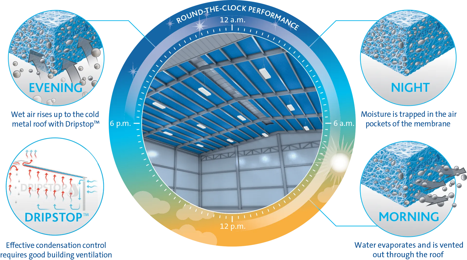 Descubra como o Dripstop® é a maneira mais rápida e fácil de combater a condensação em coberturas metálicas.