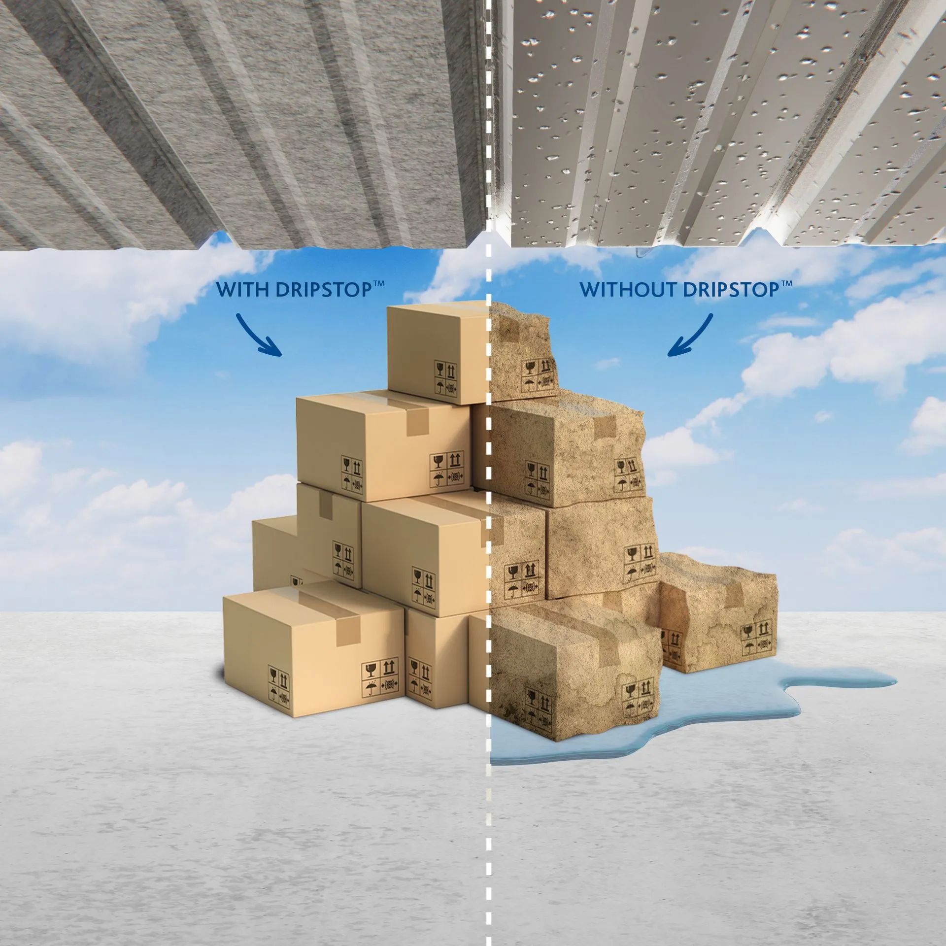 Transforme o seu processo de construção com o Dripstop™, a solução de controle de condensação econômica e que economiza tempo e aumenta a segurança e aumenta a satisfação do cliente. Experimente as vantagens exclusivas do Dripstop™ e eleve sua reputação de qualidade de acabamento.